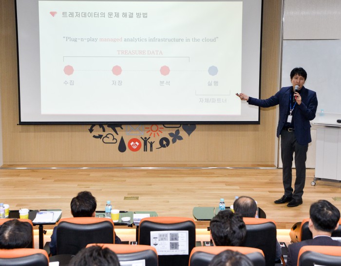 윤현 SK C&C 역량기획본부장은 “비즈 스파크 랩이 각 사업부문의 전략 실행에 실질적인 도움이 될 수 있도록 교육 과정을 넘어 유망 스타트업과 새로운 비즈니스를 창출하고 협력하는 장(場)으로 지속 발전시키겠다”고 말했다.이은철 트레저 데이터 한국 지사장이 판교캠퍼스 드림홀에서 강의를 진행하고 있다.<사진제공=SK텔레콤>