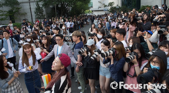 (서울=포커스뉴스) 20일 오전 서울 영등포구 KBS에서 걸그룹 에이프릴의 멤버들이 생방송 뮤직뱅크 리허설에 참여하기 위해 이동하던 중 인터뷰를 하고 있다.