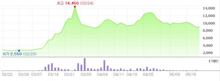 20일 오전 9시54분 현재 화이브라더스 주가는 전일 대비 2.59% 상승한 9110원을 기록 중이다.최근 3개월간 화이브라더스 주가 추이 <그래픽출처=네이버>