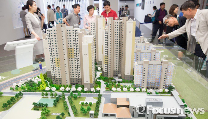 (서울=포커스뉴스) 20일 오전 서울 송파구 래미안 하우스에 개관한 래미안 과천 센트럴 스위트 견본주택을 찾은 시민들이 모형도를 살펴보고 있다.