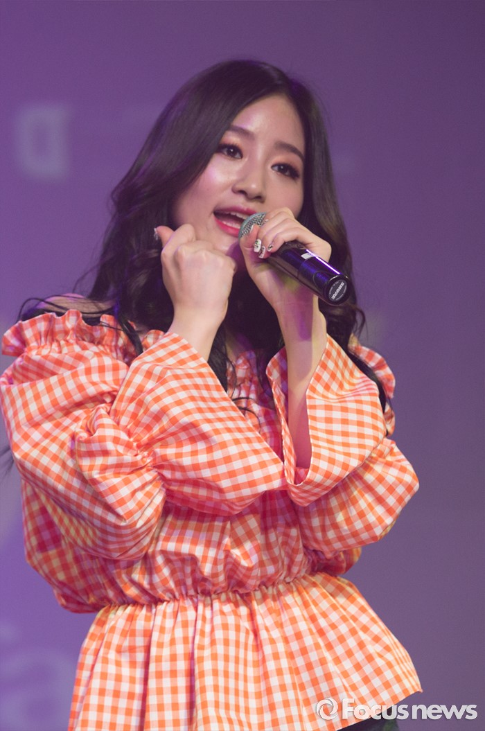 (서울=포커스뉴스) 23일 오전 서울 마포구 하나투어 브이홀에서 열린 걸그룹 타히티의 '알쏭달쏭' 쇼케이스에 참여한 멤버 제리가 무대를 선보이고 있다.