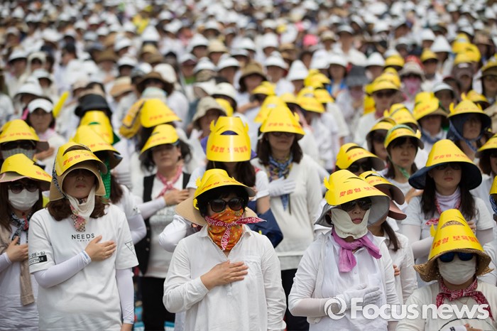(서울=포커스뉴스) 23일 오후 서울 중구 시청광장에서 보육관계자들이 '어린이집 0~2세 맞춤형 보육제도 개선 및 시행 연기'를 촉구하며 결의대회를 하고 있다.