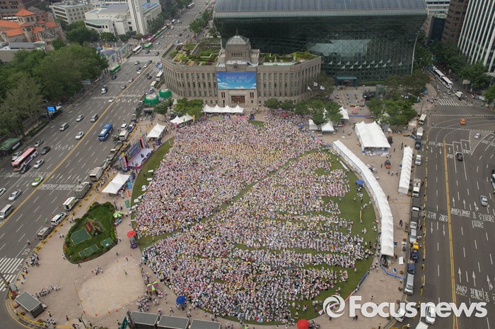 (서울=포커스뉴스) 23일 오후 서울 중구 시청광장에서 보육관계자들이 '어린이집 0~2세 맞춤형보육 제도개선 및 시행 연기'를 촉구하며 결의대회를 하고 있다.