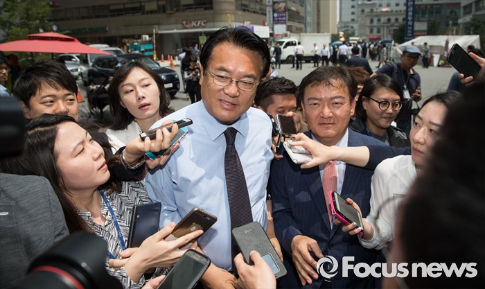 △ 취재진 질의 받는 정진석