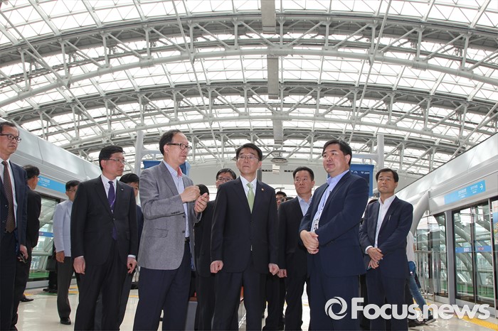 (인천=포커스뉴스) 강호인 국토교통부장관이 25일 오후 인천 경제자유구역 스마트 도시 센터를 방문 인천공항 자기부상철도를 점검하고 있다. <사진제공=국토교통부>
