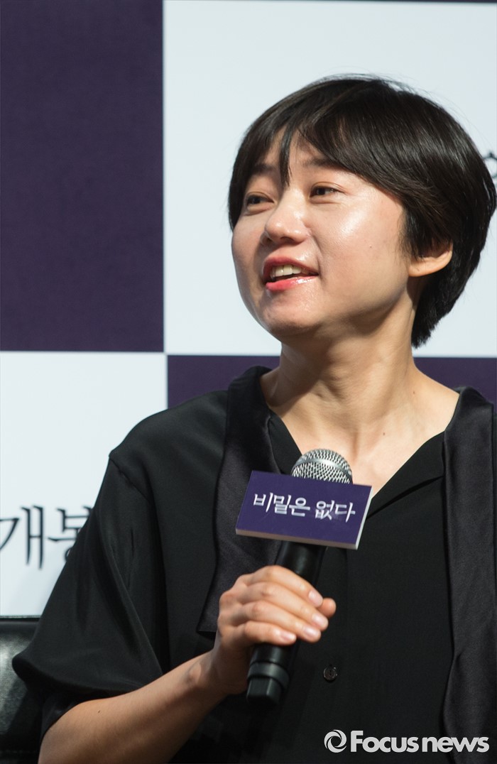 (서울=포커스뉴스) 26일 오전 서울 강남구 압구정 CGV에서 열린 영화 '비밀은 없다' 제작보고회에 참석한 이경미 감독이 취재진에게 질문을 받고 있다.