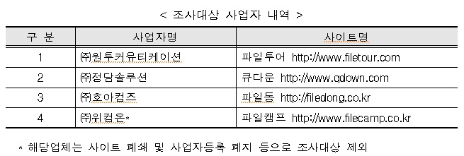 방통위는 전체 웹하드사업자(59개사업자) 대상으로 상시 모니터링을 실시해 채증한 불법음란정보에 대해 여러 번 삭제요청을 했으나 이를 이행하지 않고 지속적으로 게시한 사업자를 조사한 결과, 3개 사업자가 차단 조치를 하지 않고 있는 사실을 확인했다.