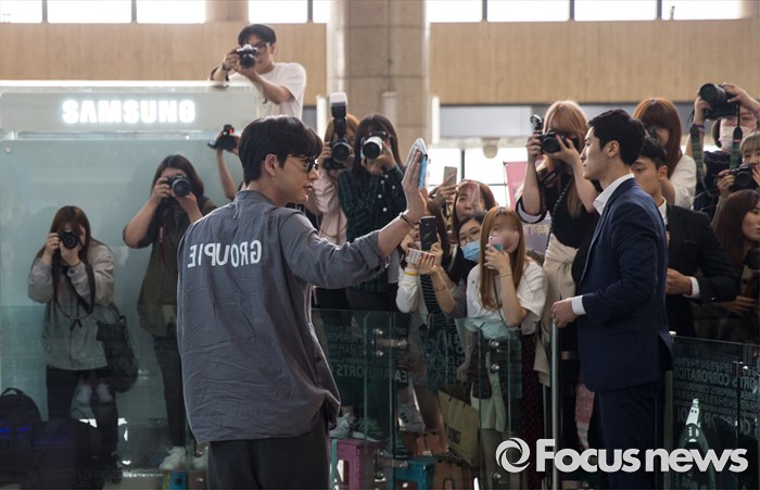 (서울=포커스뉴스) 27일 오전 서울 강서구 김포공항에서 배우 박해진이 비정상거리 녹화, 중국 단독 팬미팅의 일정을 위해 출국하고 있다.