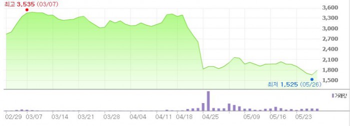 이날 집회에서는 다음달 27일로 상환일이 돌아오는 1900억원 규모의 회사채 상환일을 3개월 늦추는 것을 주로 다룰 계획이다.주가 추이 <그래픽출처=네이버>