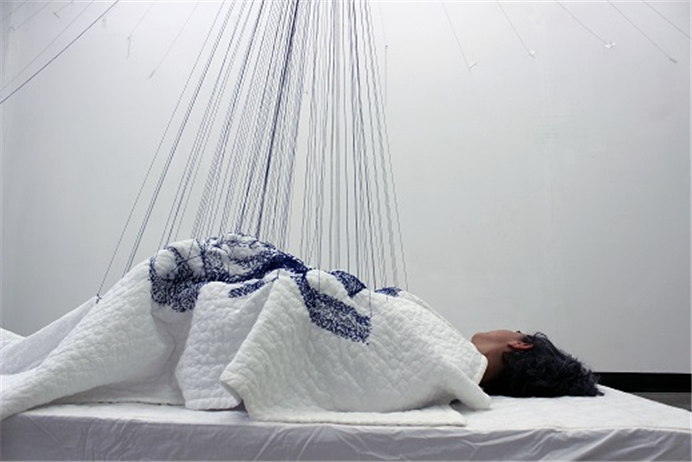 고양레지던시는 매년 '인트로(INTRO)'전을 개최해 한 해 동안 작품 활동을 펼칠 국내 입주 작가들의 대표작을 소개하고 있다. 이번 전시에서는 회화, 설치, 영상 등 다양한 분야의 작품을 만날 수 있다. 이와 함께 국제교환입주 프로그램을 통해 입주하고 있거나 입주 예정인 독일, 대만, 일본, 호주, 캐나다 등 5개국 6개 기관의 해외 작가 작품도 포트폴리오를 통해 미리 접해 볼 수 있다.국제교류 입주프로그램에 참여한 아르헨티나 출신 작가 발레리아 콘테 막 도넬의 'Between My Landscape and the Ocean, 2016, 설치 퍼포먼스' 작품.<사진제공=국립현대미술관>