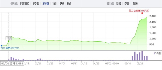2달 전 주가와 비교, 2.12배 상승