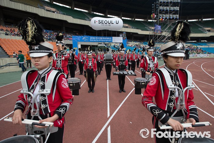 (서울=포커스뉴스) 2016 전국생활체육대축전 개막식이 열린 27일 오후 서울 송파구 잠실 올림픽주경기장에서 개막 축하 퍼레이드가 진행되고 있다.