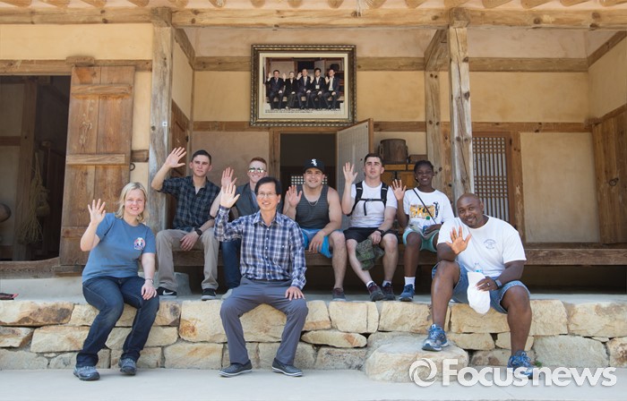 (음성=포커스뉴스) 반기문 UN사무총장이 김종필 전 국무총리를 예방한 28일 오후 충북 음성군 원남면 반기문 생가를 찾은 주한미군들이 기념촬영 하고 있다.