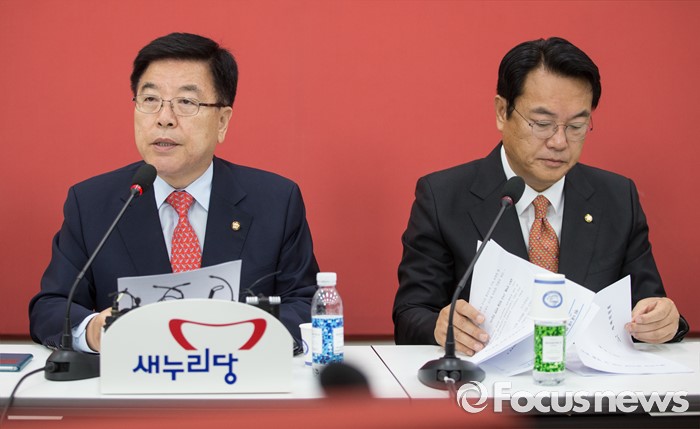 (서울=포커스뉴스) 김광림(왼쪽) 새누리당 정책위의장이 30일 오전 서울 여의도 국회에서 열린 원내대표단회의에 참석해, 발언하고 있다. 오른쪽 정진석 원내대표.