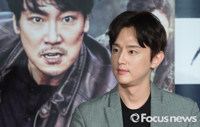 (서울=포커스뉴스) 30일 오전 서울 광진구 건대입구 롯데시네마에서 열린 영화 '사냥' 제작보고회에 참석한 배우 권율이 질문을 받고 있다.