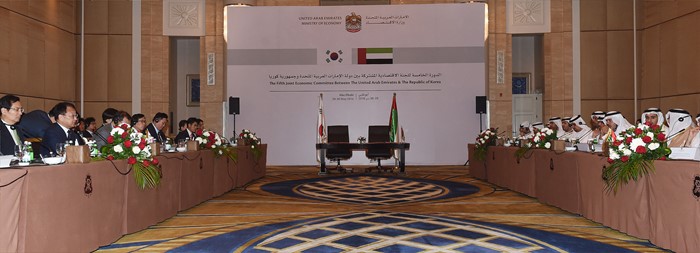 (서울=포커스뉴스) 유일호 부총리 겸 기획재정부 장관이 30일(현지시간) UAE 아부다비 St.REGIS호텔에서 열린 '제5차 한-UAE 경제공동위'에 참석, 답사를 하고 있다. <사진제공=기획재정부>
