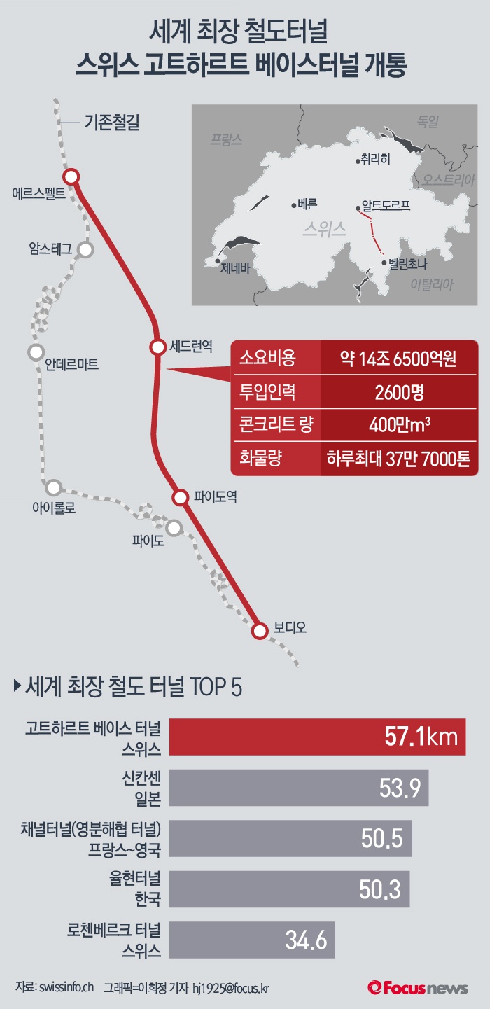 [그래픽] 세계 최장 철도터널 스위스 고트하르트 베이스터널 개통