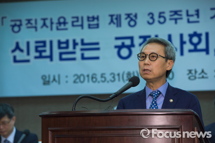 (서울 포커스뉴스) 31일 서울 종로구 한국프레스센터에서 개최된 공직자윤리법 제정 35주년 기념 포럼에 참석한 이근면 인사혁신처장이개회사를 하고 있다.<사진제공=인사혁신처>