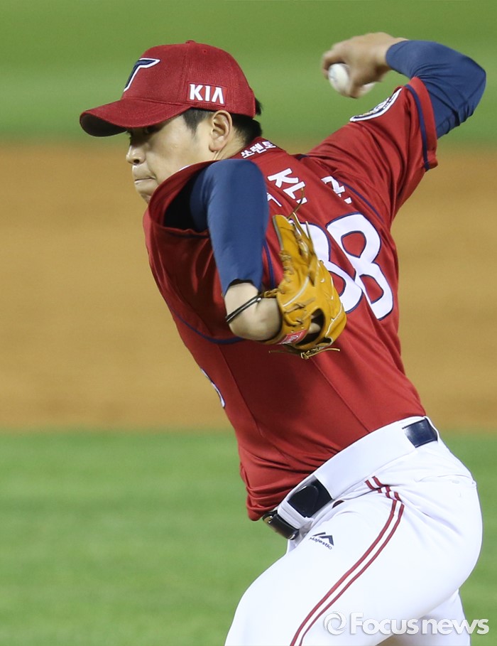 (서울=포커스뉴스) 31일 서울 잠실구장에서 열린 2016 프로야구 KIA-LG 경기 7회말 KIA 투수 박준표가 투구하고 있다.
