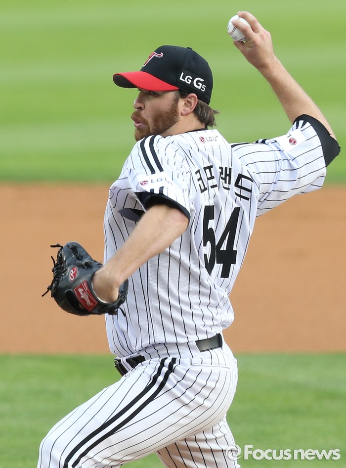 (서울=포커스뉴스) 1일 서울 잠실구장에서 열린 2016 프로야구 KIA-LG 경기에서 1회초 LG 선발투수 코프랜드가 투구하고 있다.