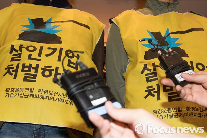 △ 입장 발표하는 가습기 살균제 피해자 유죡들