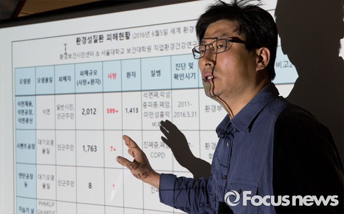 한편 이날 집담회는 '가습기 살균제와 공중보건 위기'라는 주제로 진행됐다. 서울대 보건대학원 백도명, 최경호 교수와 한국방송통신대 박동욱 교수(환경보건학과) 등 교수 10여명이 참여했으며, 가습기 살균제 사건과 관련해 △피해 현황 및 질환 범위 △정부와 보건당국 대응 평가 △현행 관리체계 문제점 및 대안 △생활환경 화학물질 관리 대책 등에 대해 토론했다.(서울=포커스뉴스) 2일 오전 서울 종로구 환경보건시민센터에서 최예용 환경보건시민센터 소장이 세계환경의 날 기념 환경성질환 피해실태조사 보고서를 발표하고 있다. 2016.06.02 김인철 기자 (서울=포커스뉴스) 2일 오후 서울 관악구 서울대학교 관악캠퍼스 교수학습 개발센터에서 '가습기 살균제와 공중보건 위기'를 주제로 집담회가 열리고 있다. 2016.06.02 이승배 기자