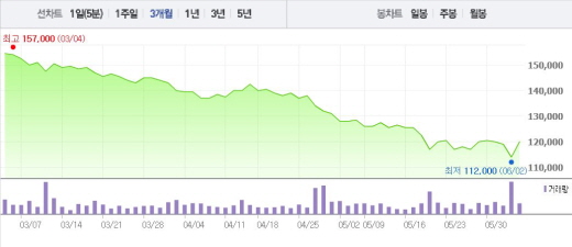 거래소는 삼성물산에 삼성에스디에스 물류부문 합병 추진 검토 보도에 대한 조회공시를 요구했다. 답변 시한은 이날 오후 6시까지다.삼성물산 주가흐름<사진출처=네이버 캡쳐>