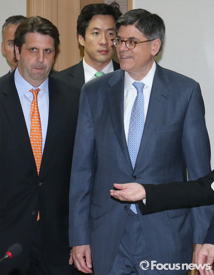 (서울=포커스뉴스) 3일 오후 종로구 정부서울청사에서 열린 한·미 재무장관회의에 제이콥 루(Jacob Lew, 오른쪽) 미국 재무부 장관과 마크 리퍼트 주한미국대사가 참석하고 있다.