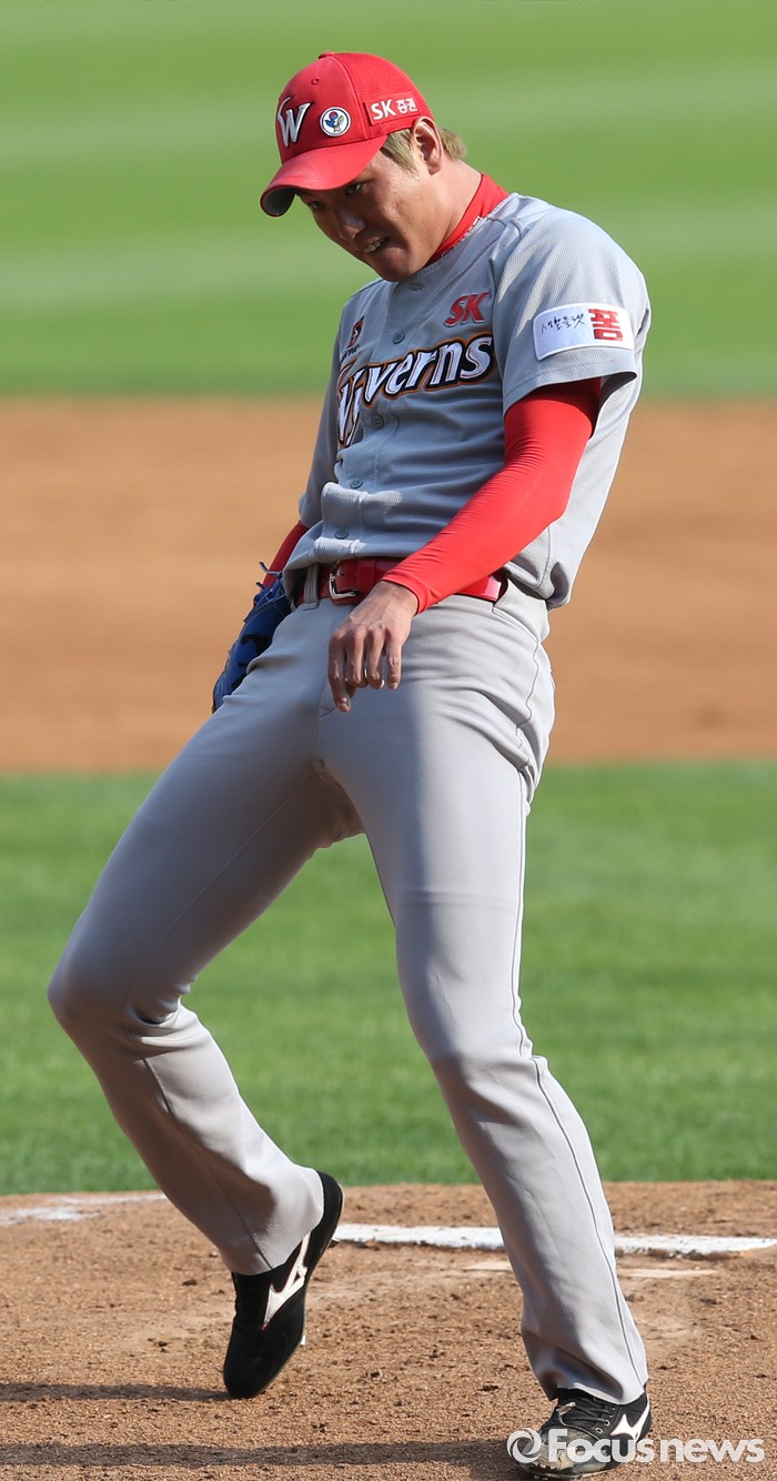 △ 취투하는 SK 김광현