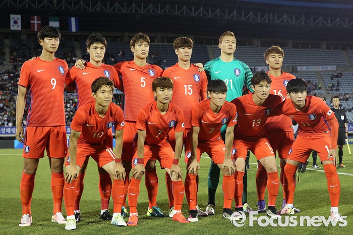 (부천=포커스뉴스) 6일 오후 경기 부천종합운동장에서 열린 2016 4개국 올림픽국가대표 축구대회 대한민국과 덴마크의 경기에서 대한민국 대표팀이 경기 전 기념촬영을 하고 있다.