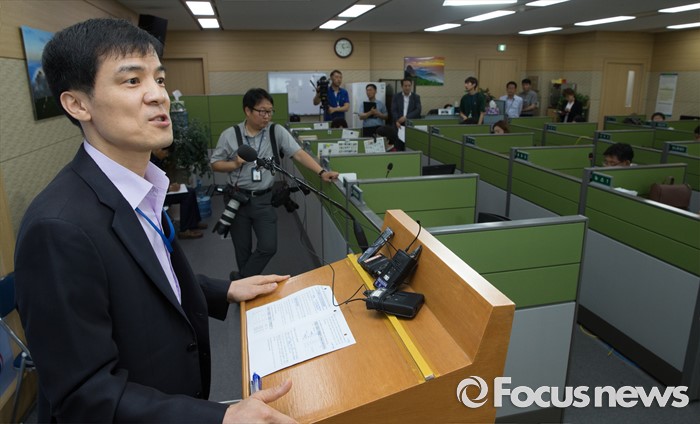 (세종=포커스뉴스) 홍동곤 환경부 교통환경과장이 7일 오전 세종시 정부세종청사 환경부 기자실에서 닛산 캐시카이 행정처분계획을 발표하고 있다.