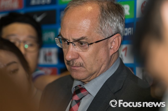 | △ 취재진 질문 듣는 슈틸리케 |