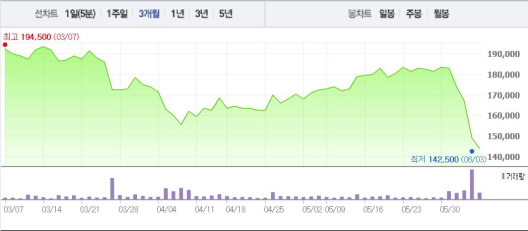 삼성SDS가 사실상 사업분할을 공식화한 것이어서 주가는 급락했다. 분할합병설이 흘러나온 이후 20% 가량 폭락했다. 지난달 말까지 18만원대를 유지했던 삼성SDS 주가는 7일 현재 15만500원(종가 기준)으로 내려앉았다.주가흐름<사진출처=네이버 캡쳐> 2016.06.07 최아람 기자