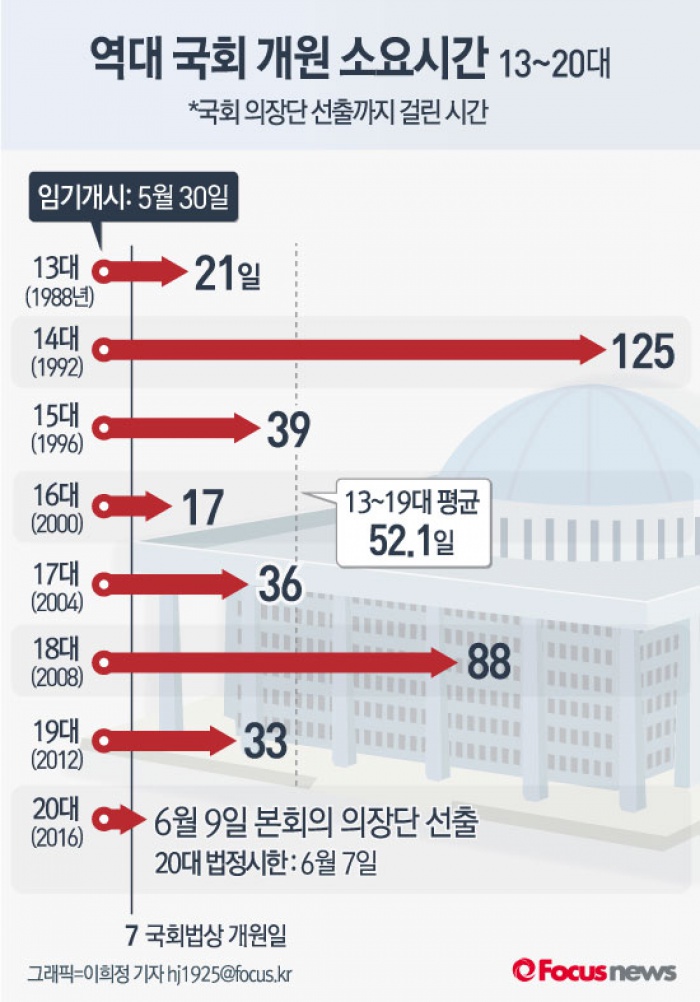 [그래픽] 역대 국회 개원 소요시간 13~20대