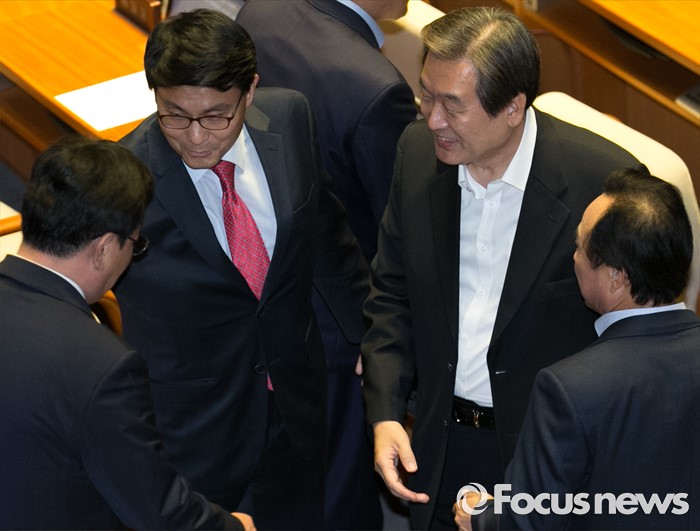 20대 국회 첫 본회의서 조우한 김무성-윤상현