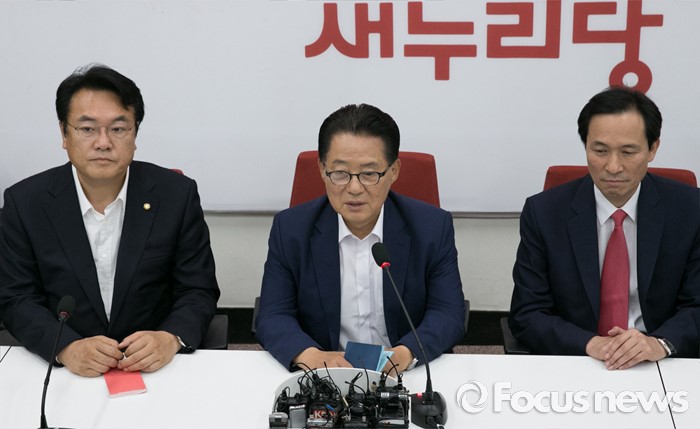 (서울=포커스뉴스) 8일 오후 서울 여의도 국회 새누리당 원내대표실에서 20대 국회 원구성 협상 등을 위한 3당 원내지도부 회동에 참석한 의원들이 취재진에게 설명하고 있다. 이날 여야 3당은 20대 국회 원구성에 합의했다. 왼쪽부터 정진석 새누리당 원내대표, 박지원 국민의당 원내대표, 우상호 더불어민주당 원내대표.