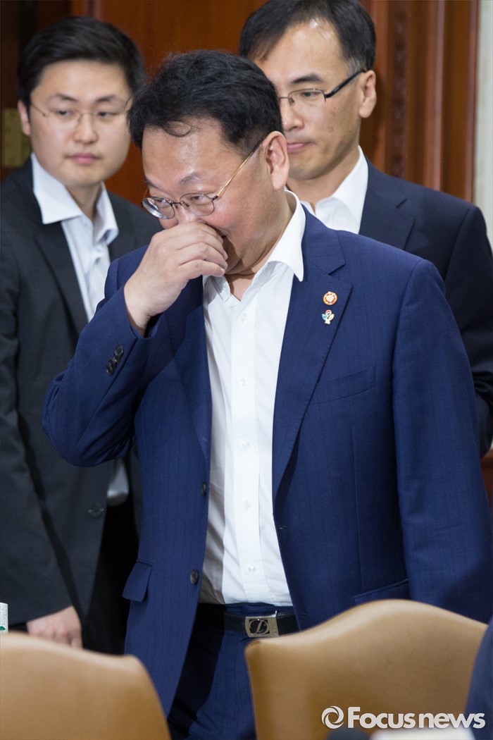 (서울=포커스뉴스) 9일 서울 종로구 정부서울청사에서 열린 제 8차 경제관계장관회의에서 유일호 부총리 겸 기획재정부 장관이 들어서고 있다.