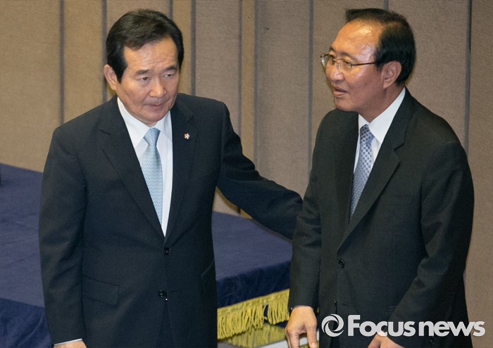 (서울=포커스뉴스) 9일 오후 서울 여의도 국회에서 열린 20대 국회 첫 본회의에 참석한 정세균(왼쪽) 더불어민주당 의원과 노회찬 정의당 원내대표가 대화하고 있다. 정 의원은 이날 20대 국회 전반기 국회의장으로 공식 선출됐다.