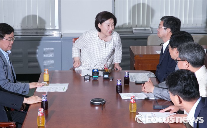 (서울=포커스뉴스) 심상정 정의당 상임대표가 10일 오후 서울 여의도 국회에서 지방재정법 시행령과 관련 경기도 기초단체장들과 만나 간담회를 하고 있다. 이날 간담회에는 염태영 수원시장, 채인석 화성시장, 최성 고양시장 등이 참석했다.