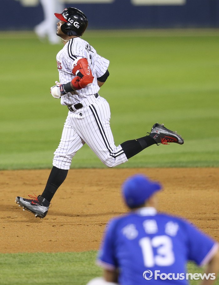 (서울=포커스뉴스) 9일 서울 잠실구장에서 열린 2016 프로야구 삼성-LG 경기 5회말 2사 1루에서 LG 히메네스가 좌월 2점 홈런을 치고 그라운드를 달리고 있다. 홈런을 허용한 삼성 장원삼은 마운드에 주저 앉아 있다.