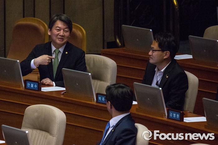 (서울=포커스뉴스) 안철수 국민의당 상임공동대표가 9일 오후 서울 여의도 국회에서 열린 본회의에 참석해 동료 의원들과 대화 나누고 있다.