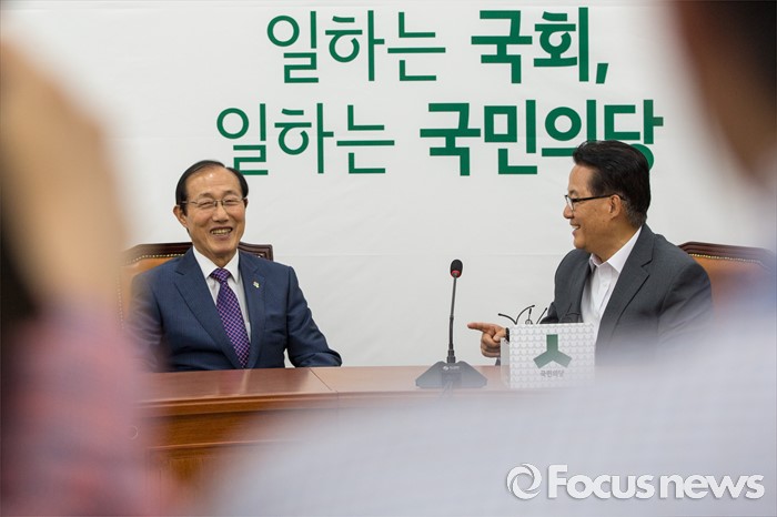 (서울=포커스뉴스) 박지원(오른쪽) 국민의당 원내대표가 10일 오후 서울 여의도 국회에서 이원종 대통령비서실장과 면담을 하고 있다.