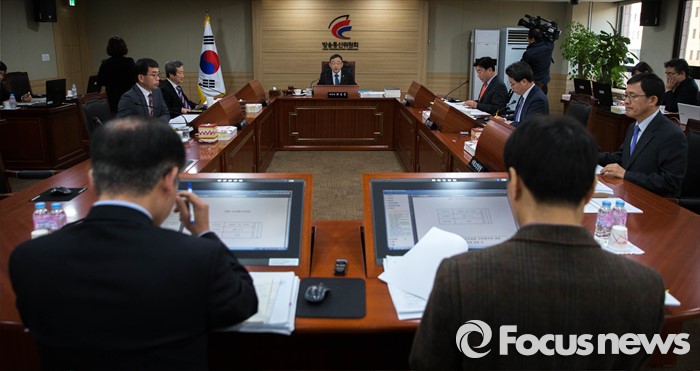 위원들 간에 감정이 격해지자 최성준 위원장은 “사실조사 시켜 놨으니, 해당 내용이 올라오면 발표하겠다”는 말로 급하게 회의를 마무리 지었다.(과천=포커스뉴스) 경기도 과천시 정부과천종합청사에서 최성준 방송통신 위원장이 참석한 가운데 방송통신위원회 전체회의가 진행되고 있다. 2016.02.04 성동훈 기자