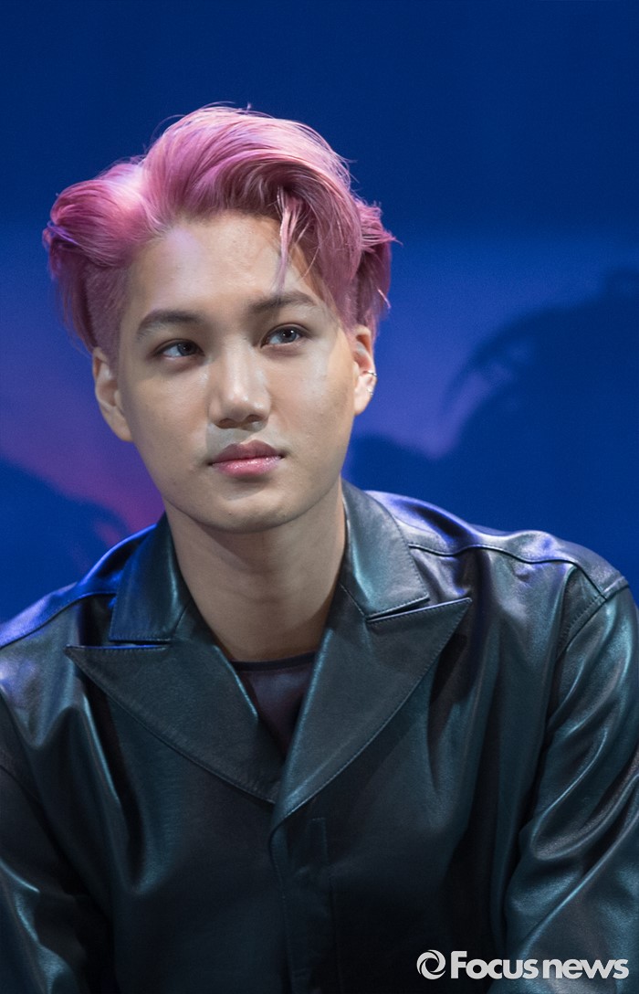 (서울=포커스뉴스) 8일 오전 서울 강남구 코엑스 아티움에서 열린 아이돌 그룹 엑소의 3집 앨범 'EX'ACT' 발표 쇼케이스에 참석한 멤버 카이가 질문을 받고 있다.
