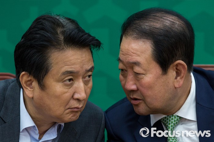 (서울=포커스뉴스) 박주선(오른쪽) 국회부의장과 김영환 국민의당 사무총장이 10일 오전 서울 여의도 국회에서 열린 최고위원회의에 참석해 대화를 나누고 있다.