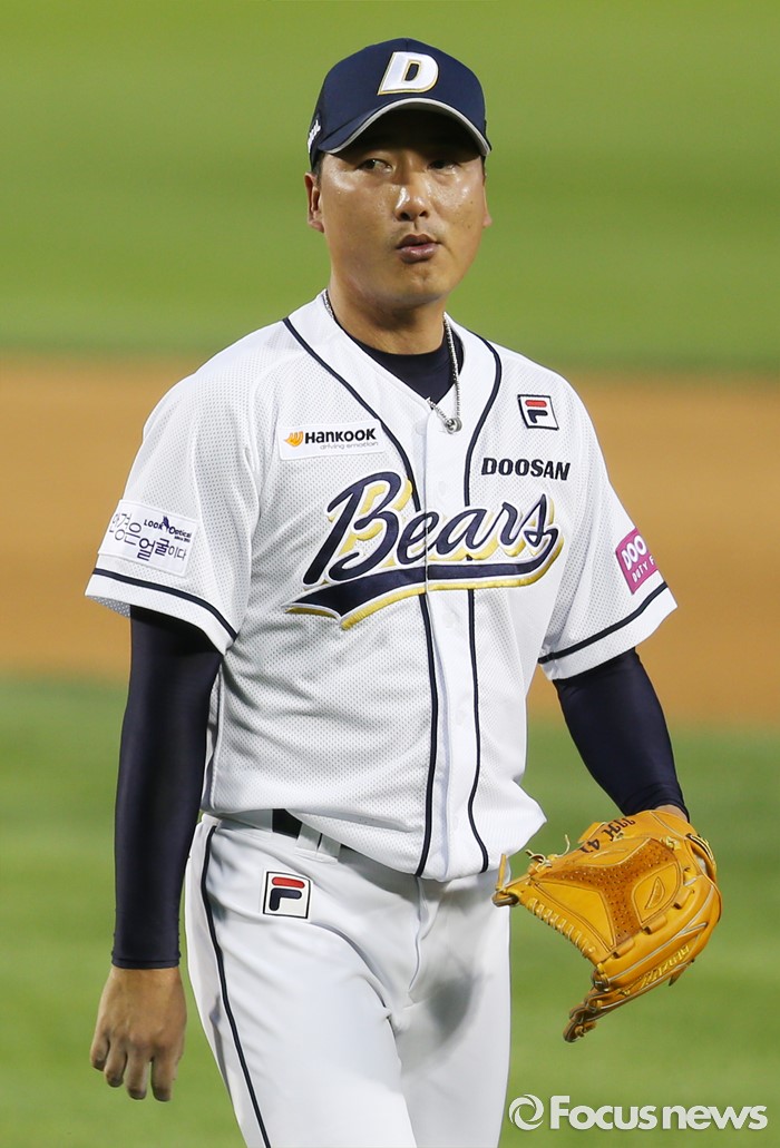 (서울=포커스뉴스) 12일 서울 잠실구장에서 열린 2016 프로야구 롯데-두산 경기 9회초 등판해 롯데 최준석에게 동점 홈런을 맞은 두산 정재훈이 이닝을 마치고 아쉬워하며 불펜으로 들어가고 있다.