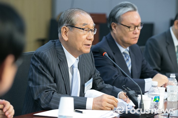 (서울=포커스뉴스) 13일 오전 서울 여의도 국회 의원회관에서 '개헌, 우리 시대의 과제'란 주제로 열린 14차 국가전략포럼에 참석한 김진현 세계평화포럼 이사장이 인사말을 하고 있다.