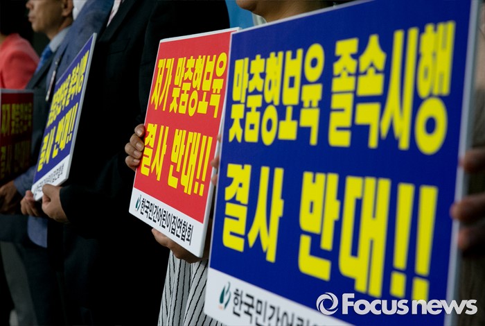 한어총 관계자는 "1차에 이은 두번째 총궐기로 전국 각지에서 최소 인력을 제외한 관계자들이 동참할 예정"이라며 "교사와 학부모의 권리를 정당하게 요구하는 한편 보육의 질을 높이는데 최선을 다할 것"이라고 밝혔다.(서울=포커스뉴스) 31일 오전 서울 여의도 국회 정론관에서 한정애 더불어민주당 의원과 장진환 한국민간어린이집연합회장 등 관계자들이 어린이집 생존권 위협하는 맞춤형 보육 철회 촉구 기자회견을 하고 있다. 2016.05.31 박동욱 기자