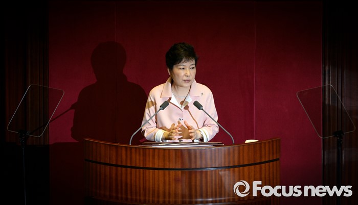 (서울=포커스뉴스) 박근혜 대통령이 13일 오전 서울 여의도 국회에서 열린 20대 국회 개원식에 참석해 연설을 하고 있다.