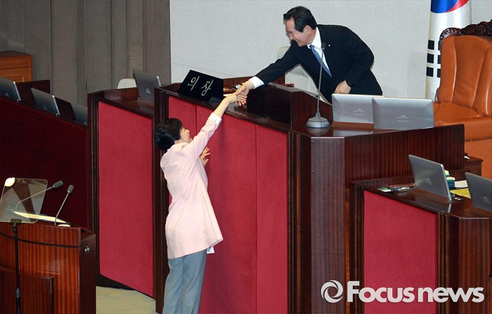| △ 정세균 국회의장과 악수하는 박근혜 대통령 |